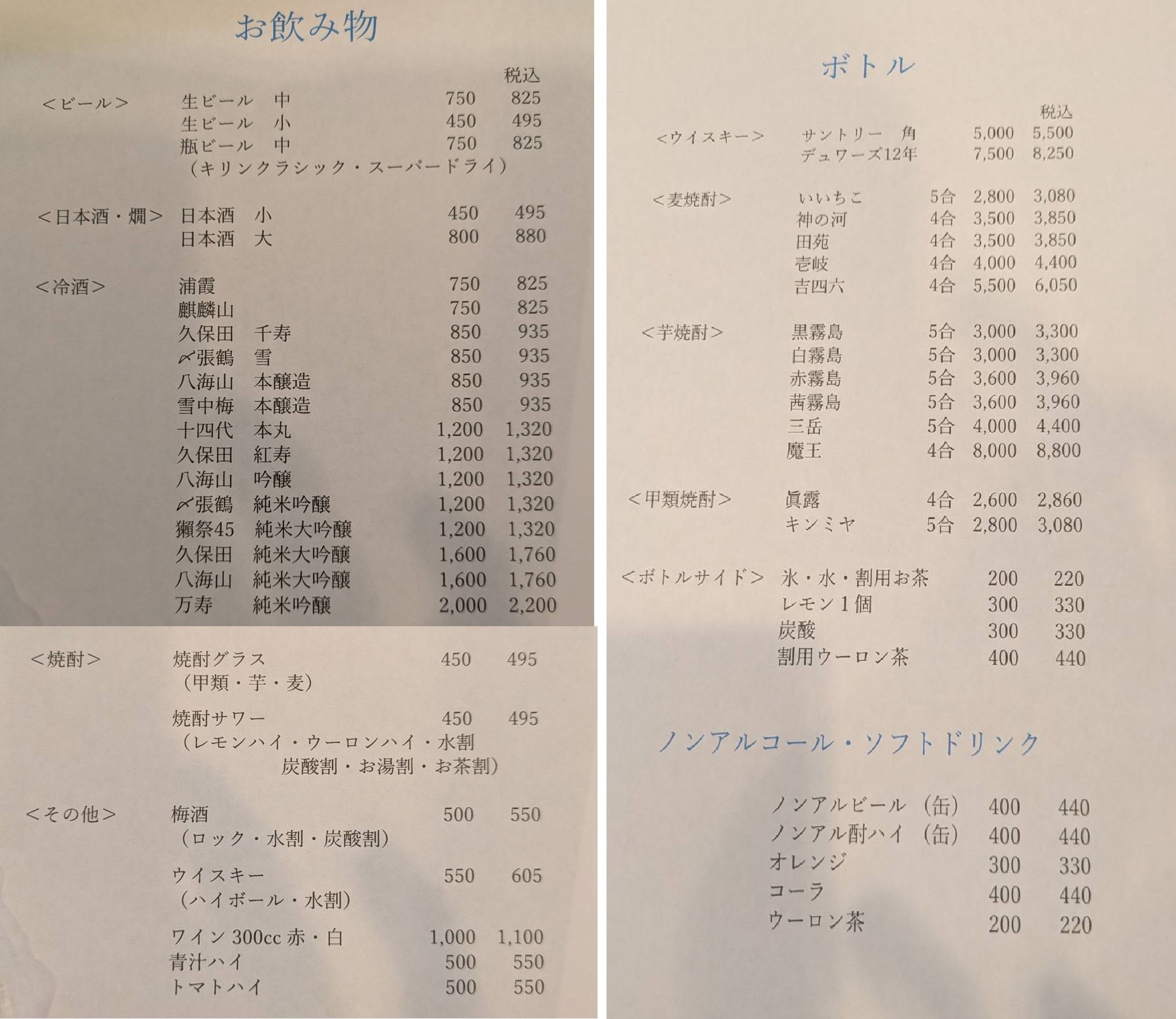 | ねぎとろ(1本) | 1,500円(税込1,650円) |
